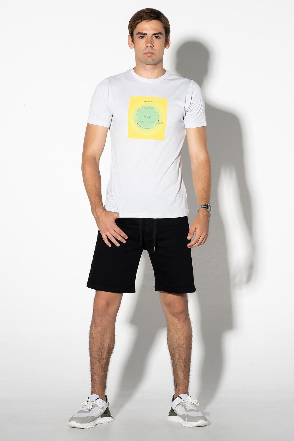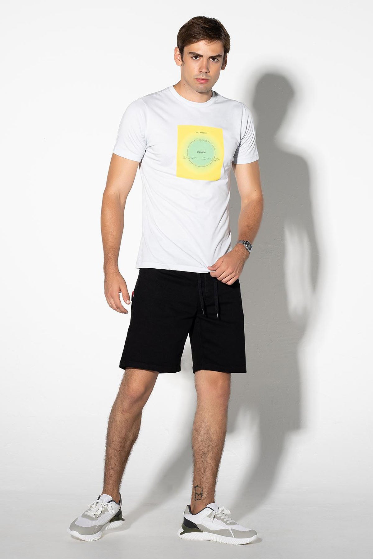100% Cotton. Stretchable And Comfortable Crew Neck Tee Shirt With Short Sleeves. Front Illustration.